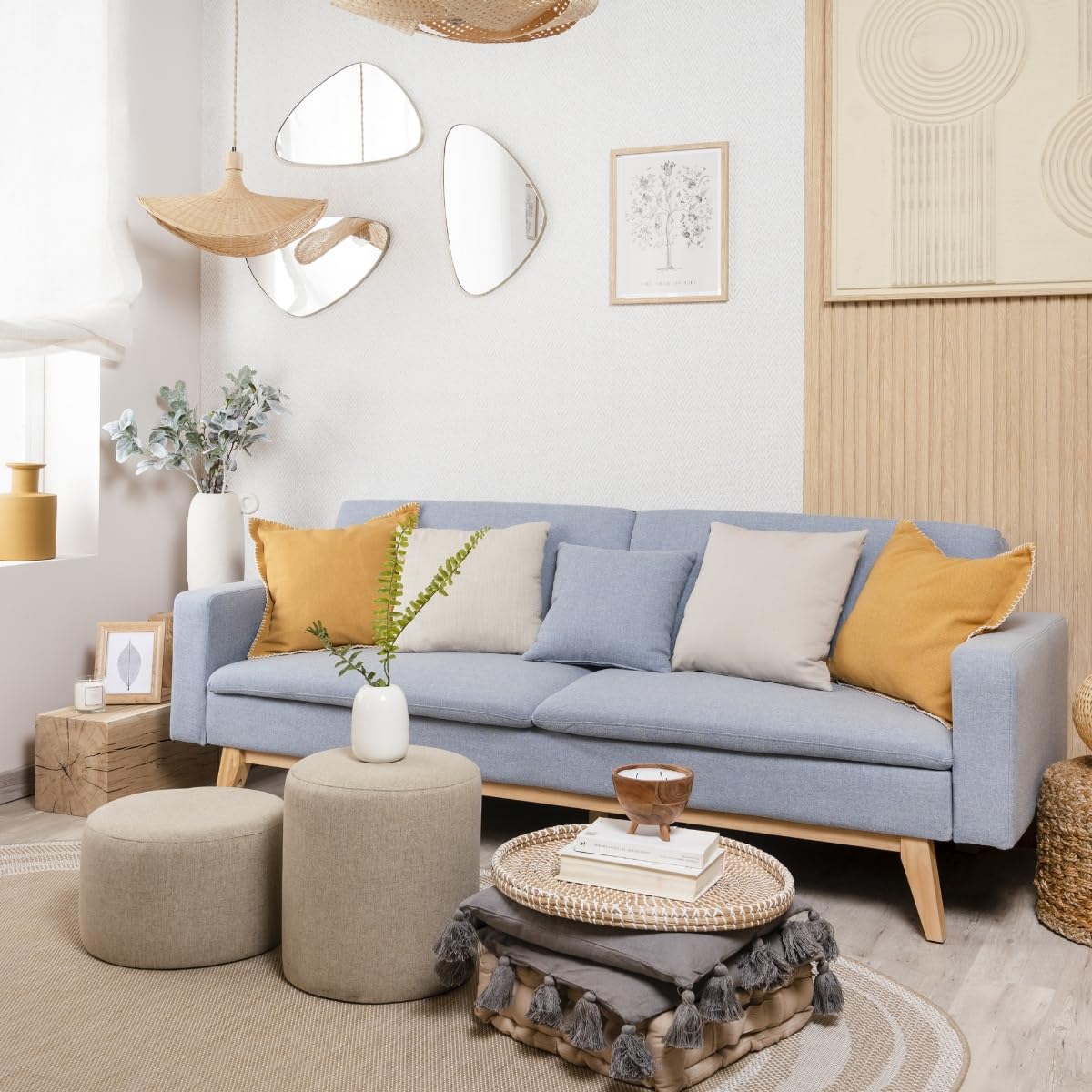 Schlafsofa 3-Sitzer mit Stoffbezug, Blau, Clic-Clac-System, 201x73x79 cm Sofa, 201x99x42 cm Bett, inkl. 2 Kissen ✅