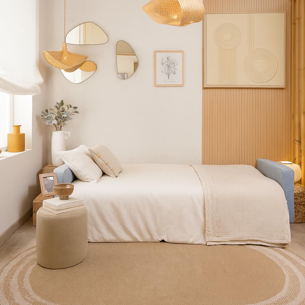 Schlafsofa für 3-Sitzer-Modell. Königin, elegantes nordisches und funktionales Design. Mit nur einer Bewegung verwandelt er sich dank des Click Clac Öffnungssystems in ein Bett. Erhältlich in 5 Farben. Das Schlafsofa Reine de Don Descanso ist die perfekte Lösung für einen zusätzlichen Schlafplatz, ohne mehr Platz einzunehmen, perfekt und bequem für den Alltag als Sofa und für Gäste als Bett. Eigenschaften: Maße Sofa: 206 x 74 x 83 cm. (LxTxH); Sitzhöhe: 43 cm; Sitztiefe: 52 cm; Maße Bett (mit Armen): 206 x 100 x 43 cm. (L x T x H), Maße Bett (ohne Arme): 180 x 100 x 43 cm. (Länge x Tiefe x H), Gewicht: 40 kg. Maße Box (Lieferumfang): 180 x 99 x 23 cm. Hochwertige Materialien, bezogen mit Stoff, Gestell und Beine aus Eukalyptusholz und D50 Schaumstoff kombiniert mit D15 für maximale Anpassungsfähigkeit und maximalen Komfort. Click Cla. C oder Buch, das Ihnen hilft, die Rückenlehne des Sofas in verschiedene Positionen zu lehnen und es leicht in ein bequemes Bett zu verwandeln. Erhältlich in fünf Farben: Hellgrau, Marengo, Rosa, Himmelblau und Minzgrün. Schnelle und einfache Montage. Inklusive Anleitung (evtl. nicht in deutscher Sprache). Wichtig: Für dieses Produkt wird die Lieferung an die Wohnungstür erfolgen. Wenn es keinen Aufzug im Gebäude gibt, erfolgt die Lieferung auf der Straße. Bitte beachten Sie, dass diese Produkte sperrig sind. Um sicherzustellen, dass das Produkt die erforderlichen Hotspots durchlaufen kann, überprüfen Sie bitte die Größe auf der Produktdetailseite vor dem Kauf. (Verpackungsmaße: 180 x 99 x 23 cm) Nur auf der Halbinsel erhältlich. Die Rückgabekosten dieses Produkts werden höher als die üblichen Rückgabekosten.